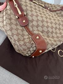 Borsa Gucci, esterno in tela monogrammata e interno in suede.