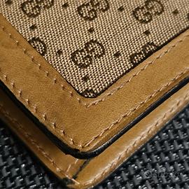 cuciture uniformi e pelle sintetica con stoffa tela monogramma con il logo GG e marchio gucci originale in oro.