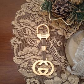 Gucci portachiavi metallo dorato con inserti vera pelle marrone. G intrecciate.Nuovo senza cartellino. 🎁🎁