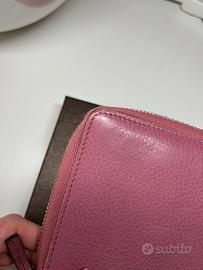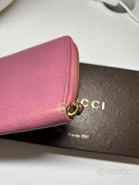 Portafoglio Gucci originale completo di scatola e cartellini in pelle colore rosa, angoli leggermente usurati. Buone condizioni.