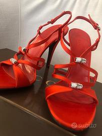 Scarpa gucci raso seta cristal n 38 color rosso nuove mai indossate originali altezza tacco 10cm