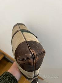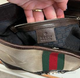 Gucci hobo vintage in tela ,buone condizione,usura lati,e la pelle ,interno pulito ,bisogna rinforzare lati della tracolla , io usato cosi .Misura 36/25/2.Presente piccolo strappo davanti ,come nella foto .Altri foto su richiesta