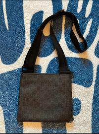 Tracolla Gucci originale in canvas tecnico nero con motivo monogram discreto e finitura saffiano.