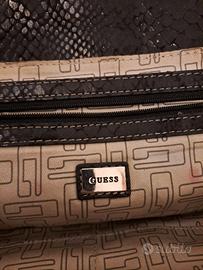 Borsa a spalla Guess nera con stampa effetto pelle di serpente (o coccodrillo) e dettagli hardware color argento.