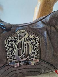 Guess borsa vintage grigia goffrata con maniglia intrecciata e logo gotico in perfette condizioni pari al nuovo #guess #borsa #vintage #goffrata #grigia #logogotico #perfettecondizioni
