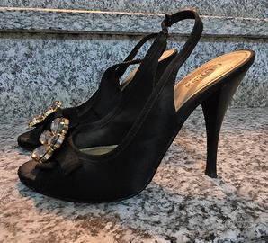 Décolleté Guess nere in raso con motivo davanti gioiello