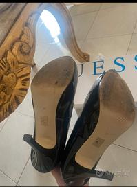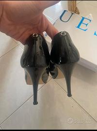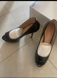 decolte nere finitura vernice plateau e tacco a spillo apertura open toe usate pochissimo con scatola oroginale