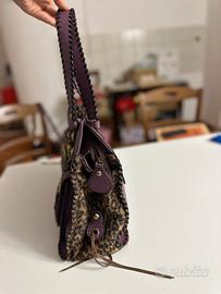 Modello vintage Guess con dettagli viola e stampa leopardata. È una borsa a spalla caratterizzata da: