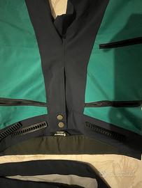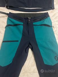 Vendo completo da Scialpinismo usato Scott taglia S colore blu e verde, guscio hardshell con : ghetta paraneve interna, aperture di ventilalazione, tasche portaoggetti, polsini regolabili e cappuccio compatibile con casco; Pantaloni softshell con cerniere di ventilazione, ghetta esterna rinforzata in cordura e cerniere di apertura X scarponi , ghetta interna paraneve, doppia tasca portaoggetti.