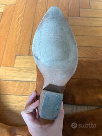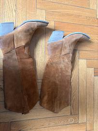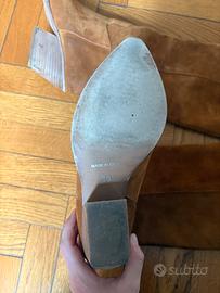 Guya stivali donna in camoscio marrone 38 camperos, stile western, eleganti e versatili Prezzo originale: 180€ 📏 Taglia: 38 🎨 Colore: miele 🧵 Materiale: camoscio morbido e di qualità ⭐ Condizioni: ottime condizioni, usati 5 volte 👢 Dettagli: Modello alto sotto il ginocchio Stile western/texano Punta leggermente affusolata Senza zip (calzata morbida) Linea elegante e slanciata 💡 Perfetti per: outfit autunnali/invernali, look casual o chic 📦 Spedizione veloce 💬 Scrivimi per info o misure Women’s brown suede boots size 38 camperos – western style, elegant and versatile Original price: €180 📏 Size: 38 🎨 Color: Honey brown 🧵 Material: Soft, high-quality suede ⭐ Condition: Excellent condition, worn only 5 times 👢 Details: Knee-high model Western/cowboy style Slightly pointed toe No zip (soft pull-on fit) Elegant and streamlined shape 💡 Perfect for: autumn/winter outfits, casual or chic looks 📦 Fast shipping 💬 Feel free to message me for info or measurements