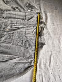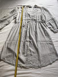 H&M vestito chemisier o camicia a righine sottili, con elastico in vita e doppi bottoni sulle maniche se si vogliono arrotolare. Tessuto in 100% cotone leggero e un po' trasparente, versatile può essere indossato anche con pantaloni o un vestito e lasciarlo aperto. Taglia 42, ci sono le foto con il metro e dell'etichetta, c'è anche un bottone di ricambio sull'etichetta, c'è la foto. In ottime condizioni nessun difetto, capo utilizzato e per questo ho scelto di metterlo in "buone condizioni"