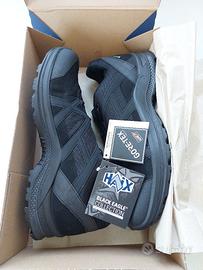 Che tu sia un appassionato di attività all'aperto o un artigiano specializzato, hai bisogno di una scarpa dalla calzata perfetta con caratteristiche affidabili come un'elevata traspirabilità o un'impermeabilità permanente su terreni irregolari. Le Haix Athletic 2.1 non ti deluderanno, sia all'interno che all'esterno. La membrana Gore-Tex® garantisce il massimo in termini di traspirabilità e impermeabilità, la suola antiscivolo offre un'aderenza eccellente e il resto della scarpa HAIX garantisce la massima soddisfazione. Perfettamente equipaggiate per ogni terreno Superfici bagnate o scivolose: sia al lavoro che nel tempo libero, questi requisiti devono essere soddisfatti in modo affidabile. La suola antiscivolo delle HAIX Black Eagle Athletic 2.1 offre un ottimo supporto e una presa salda. L'azienda di Mainburg ha dotato la suola di una speciale mescola di gomma che garantisce un'ottima aderenza su quasi tutte le superfici. Il profilo pronunciato delle scarpe garantisce un'aderenza eccellente e un comfort di rullata equilibrato. L'intersuola in schiuma leggera ammortizza perfettamente i tuoi passi e offre un'ammortizzazione ottimale. Il tallone riceve un ulteriore supporto da uno speciale inserto nella scarpa. Protezione permanente dall'acqua Le scarpe sono impermeabili in modo permanente grazie alla membrana Gore-Tex®. La membrana a poro aperto garantisce inoltre la massima traspirabilità e allontana l'umidità in modo affidabile. Questo crea un clima interno perfetto, lasciando i piedi asciutti e a una temperatura confortevole. Inoltre, la tomaia in microfibra e tessuto è estremamente leggera e traspirante, un aspetto che si nota anche con un utilizzo prolungato. La scarpa si adatta al piede grazie a un sistema di allacciatura rapida, con i lacci infilati nella linguetta. Fodera e caratteristiche funzionali La fodera in tessuto è robusta, morbida e resistente, garantendo un comfort duraturo. La membrana Gore-Tex® trattiene l'umidità e la allontana dall'interno.