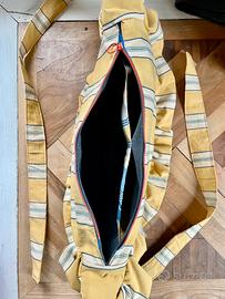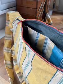 Halfmoon / croissant handmade bag in yellow, white and light blue Lining with two inside pockets You can ask for your own customise croissant / halfmoon bag #upcycling #upcycled #halfmoonbag #hobobag #giftideas #birthdaypresent #customized