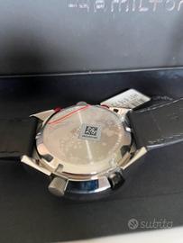 Il quadrante "reverse panda" rappresenta la firma stilistica di Hamilton. Gli audaci dettagli rossi sottolineano il dinamismo di questo segnatempo multifunzione che include il timer ("countdown") da cui l'orologio prende il nome.