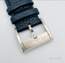 Vendo bellissimo Hamilton Jazzmaster chronograph, movimento automatico H-21 base ETA Valjoux 7750( CRONOGRAFO SUPER AFFIDABILE). Con una riserva da carica fino a 60 ore. L'orologio è tenuto benissimo come si vede dalle foto, cinturino in pelle blu quasi nuovo e fibbia originale, diametro cassa 42mm. Referenza. H325960