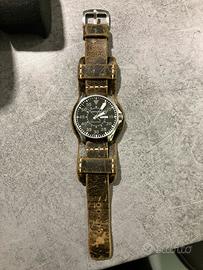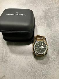 Vendo Hamilton automatico day date 46mm pari al nuovo, impermeabile 200mt, effettuata revisione completa alla casa madre a settembre 2025 completa di lucidatura cassa, sostituzione vetro zaffiro e altri componenti che hanno ritenuto da sostituire come lancette e quadrante (come si vede dalle foto mi hanno inviato anche i vecchi sostituiti) e garanzia che parte dalla data di revisione. Cinturino bund in vera pelle effetto consumato pagato 70€. Prezzo poco trattabile perché l’orologio é davvero pari al nuovo.