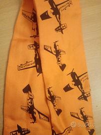 Foulard in seta arancio con aerei neri marchio hamilton su entrambi i bordi ed i lati Lunghezza cm 87 Larghezza cm 5
