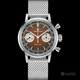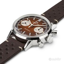 Orologio Nuovo! 40mm meccanico a carica manuale Corredo con cinturino pelle traforato e bracciale acciaio Valuto permute con orologi recenti (preferibilmente cronografi meccanici) come Seiko, Tissot, Squale, Longines, Tudor, Mido, Eberhard , Doxa, Rado, Sinn, Hanhart