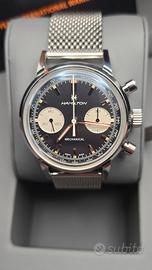 Intra-Matic Chronograph H: Animato dal nuovo esclusivo movimento cronografico a carica manuale H-51, questo segnatempo dimostra di avere carattere. Un vetro zaffiro bombato con doppio trattamento antiriflesso protegge l’iconico quadrante , infondendo tutta la forza della tradizione orologiera a questa versione meccanica di un amato modello di ispirazione vintage.