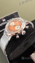 Hamilton intramatic mechanical Prezzo €1.680💶 "Caratterizzato dallo spirito delle corse degli anni "70, l'American Classic Chronograph 40 mm in marrone vintage esprime l'intramontabile stile americano. Le sue finiture fumé e i tocchi di colore rétro evocano l'emozione della pista, mentre i cinturini traforati ispirati alle corse automobilistiche completano il look." Ref h38429591 Cassa 40mm Movimento manuale H-51 Vetro zaffiro Tasti a pompa Special box Bracciale + cinturino in pelle+ spernatore Dial marrone degradé Nuovo 2 anni di garanzia Listino €2.295💶 ⌚️COMMERCIANTE ⌚️ 🔄Valuto permute 📲Contatti WhatsApp 3281662306 🚚Spedizione assicurata 💶Acquisto il tuo orologio usato 🎯seguimi su instagram like_a_watch