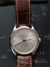 Vendo prestigioso orologio Hamilton Jazzmaster Viewmatic Slim, modello fuori produzione e molto ricercato per la sua eleganza e il profilo estremamente sottile. Caratteristiche principali: - Referenza ufficiale: H32715551 (visibile sulla targhetta originale inclusa). - Diametro cassa: 45 mm (grande presenza al polso, ideale per amanti degli orologi oversize). - Spessore: Solo 5 mm. È un modello ultra-slim che veste perfettamente sotto ogni polsino. - Vetro: Cristallo Zaffiro antigraffio in condizioni impeccabili. - Cinturino: Originale Hamilton in pelle marrone, lunghezza totale 24 cm. Stato dell’oggetto: Segnalo che presenta i normali segni di usura dovuti all'utilizzo (come visibile in foto), ma è ancora perfettamente solido e utilizzabile.