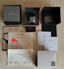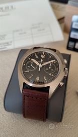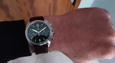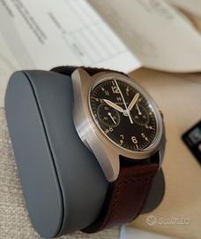 Hamilton Khaki Aviation Pioneer Mechanical Chrono - Full Set & Garanzia Propongo dalla mia collezione privata questo splendido cronografo meccanico Hamilton, referenza H76409530. Un pezzo che non ha bisogno di presentazioni per chi ama l'heritage militare: è la fedele reinterpretazione dei cronografi asimmetrici forniti alla RAF negli anni '70. Provenienza e Garanzia: L’orologio è stato acquistato "come nuovo" l'11/11/2025 presso il rinomato gioielliere tedesco Miquel Schmuck & Uhren. L'acquisto originale risale a novembre 2024. Oltre alla card di garanzia internazionale Hamilton, fornisco la fattura di Miquel che garantisce l'orologio per ulteriori 2 anni (fino a Novembre 2027). Condizioni: L'orologio è in condizioni estetiche e meccaniche perfette, pari al nuovo. Corredo Full Set: scatola, controscatola, manuali e documenti originali. Dettagli Tecnici: • Movimento: Calibro manuale H-51-Si. Una chicca tecnica con spirale in silicio (anti-magnetica) e ben 60 ore di riserva di carica. • Cassa: 40mm in acciaio con design asimmetrico iconico. • Vetro: Zaffiro bombato con trattamento antiriflesso (stupendo l'effetto vintage). • Cinturino: Originale in pelle di vacchetta marrone, praticamente nuovo. • Impermeabilità: 10 bar (100m). Note Personali: Sono un grande appassionato di orologeria e garantisco la massima serietà. Vendo questo pezzo solo perché ho realizzato di preferire la praticità dei movimenti automatici rispetto alla carica manuale. Inoltre, sto sfoltendo la collezione per finanziare l'ingresso di un Omega. Mi piace parlare di orologi, quindi rispondo con piacere a qualsiasi domanda, dubbio o richiesta di approfondimento. Se desiderate foto macro specifiche, video del funzionamento del cronografo o semplicemente una chiacchierata tecnica, non esitate a contattarmi. Spedizione e Pagamento: Assicuro un imballaggio a prova di bomba e spedizione tracciata. Disponibile anche per consegna a mano per verificare di persona la bontà di questo segnatempo.