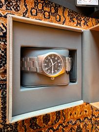 Orologio originale, kit completo di scatola, controscatola, manuale, garanzia (acquistato luglio 2025: 2 anni garanzia Hamilton + 2 anni garanzia rivenditore), tag con referenza e prezzo (Eu495). La clasp del cinturino presenta l’incisione “D.”