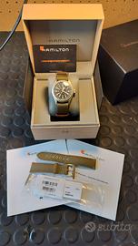E' un full set e viene consegnato con tutto ciò che è visibile in foto, ovvero: scatola, libretti e garanzia originali, più un secondo cinturino Hamilton originale in pelle di vitello con la sua fibbia. Solo il cinturino costa 115 euro.