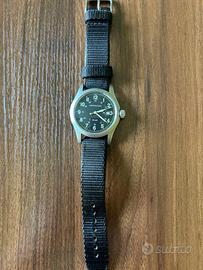 Hamilton khaki field 42 mm quadrante black perfetto con scatola e garanzia originale vero affare per collezionisti e appassionati Il Khaki Field incarna la tradizione militare Hamilton tramite la semplicità del suo design. Sul quadrante spicca un font chiaro con numeri arabi ben dritti e una minuteria a binario. La palette cromatica è sobria: un quadrante nero raffinato messo in risalto da indici in Super-LumiNova® verde chiaro. Perfetto per le tue avventure all'aria aperta, l'orologio è provvisto di un cinturino nero in tessuto NATO con passanti in pelle nera. Volendo vendo insieme ad altro Hamilton khaki quartz (guardare sulla mia pagina) a 600 euro entrambi