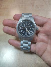 Splendido hamilton khaki 38mm carica manuale. In perfette condizioni, praticamente nuovo senza alcun segno. Bracciale perfetto e con tutte le maglie. Completo di scatola e card di garanzia. Luglio 2025 . Regalo nato generico verde militare