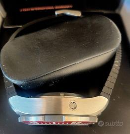 Con la sua robusta cassa da 46 mm, il Khaki Navy Frogman Titanium è un vero gigante del mare. Impermeabile fino a 100 bar (1.000 m), è adatto alle profondità e agli ambienti sottomarini più ostili. Realizzato in titanio leggero ma resistente e corredato da un pratico cinturino in caucciù, è un dispositivo di sicurezza fondamentale per gli esploratori subacquei.