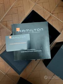 Vendo come da titolo orologio Hamilton Khaki Pilot day date quadrante nero e cinturino in pelle nera cassa da 46mm automatico compreso di scatola,contro scatola,libro uso e manutenzione e tesserina di garanzia ufficiale per inutilizzo,l’orologio non presenta graffi ne segni di usaura…solo scambio a mano su potenza,non spedisco e non scambio