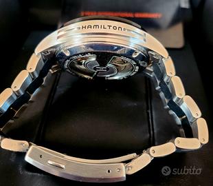 “Usato in condizioni perfette con scatola e documenti” Hamilton Khaki Tachymiler Automatic Chrono Vetro Zaffiro Movimento automatico calibro ETA Valjoux 7750 Materiale del cinturino Acciaio inossidabile Numero di referenza H717260 Caratteristiche Cronografo Resistenza all'acqua 100 m (10 ATM) Materiale della cassa Acciaio inossidabile Movimento Meccanico (automatico) Tipo Orologio da polso Colore della cassa Argento Colore del quadrante Nero