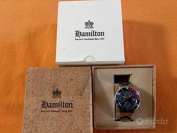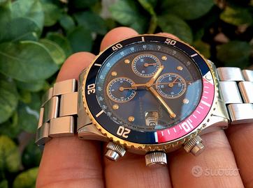 GUARDA ANCHE GLI ALTRI MIEI ANNUNCI,POTRESTI TROVARE IL SEGNATEMPO CHE STAI CERCANDO! SE L’INSERZIONE È VISIBILE L’OROLOGIO E’ DISPONIBILE ! LEGGI TUTTO! Prezzo non trattabile ! ( GENTILMENTE NON CHIEDETE ) Hamilton Lancaster Pepsi Chronograph Automatic Lemania Vintage Ref.3355.Cassa in acciaio da 39 mm. ad esclusione della corona di carica e pulsanti,lug to lug 45 mm,dial e sfere originali in splendide condizioni,ghiera girevole unidirezionale perfettamente funzionante precisa e senza lasco,fondello a pressione,corona doppio scatto ok,datario scatto rapido ad ore 3 perfettamente funzionante,Movimento meccanico a carica automatica swiss made Lemania calibro LWO 283 a 40 rubini perfettamente funzionante con ottima buona del tempo e riserva di carica,cronografo perfetto in tutte le sue funzioni,bracciale originale piu’ maglie aggiuntive,scatola e contro scatola originale,non possiedo garanzia PREZZO NON TRATTABILE No Perditempo!