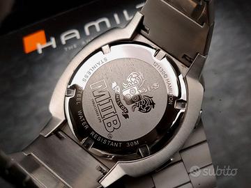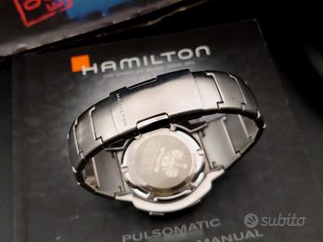 Viene venduto full‑set: scatola esterna Hamilton “MIB II Official Equipment”, scatola tonda interna, manuale “Pulsomatic / Digital”, libretto istruzioni, tag originale con referenza H51413199.
