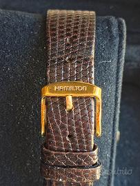 Condizioni generali: Ottime per un vintage di oltre 60 anni. Funziona bene (carica automatica e tiene l'ora), corona firmata Hamilton, Nessuna ammaccatura evidente sulla cassa, solo normali segni del tempo sul fondello. Pronto da indossare o da collezione.
