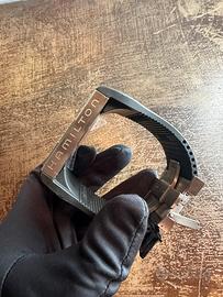 Orologio iconico e non convenzionale firmato Hamilton, celebre per il suo design modulare e per la lettura simultanea di più fusi orari.