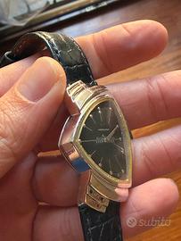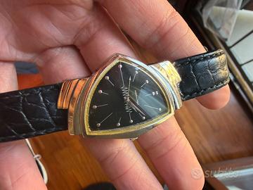 Vendo Hamilton ventura, orologio usato con cinturino aftermarket, no confezione, funzionante con batteria da sostituire. Dato il prezzo esiguo non è trattabile e chiedo massima serieta e no perditempo, solo ritiro a mano a Carpi (modena o reggio emilia), se interessati ho anche un omega vintage e un longines al quarzo visibile nel mio profilo.