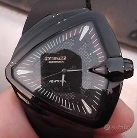Vendo Hamilton Ventura XXL Auto, un modello iconico noto per la sua distintiva cassa a forma triangolare. Questa specifica versione è spesso associata all'anniversario di Elvis Presley, essendo il Ventura l'orologio preferito dal "Re del Rock and Roll".