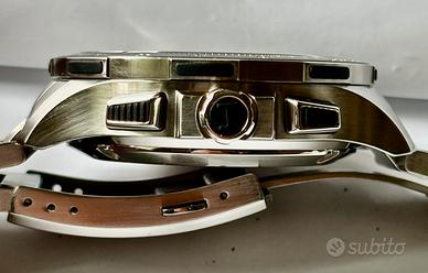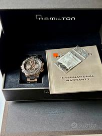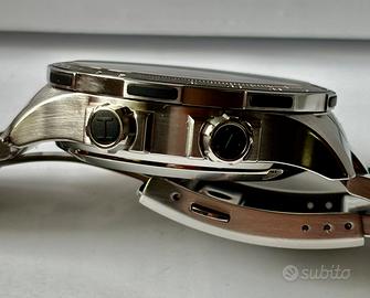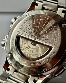 Vendo dalla mia collezione privata con le seguenti caratteristiche: Caratteristiche Referenza H77766131 Calibro H-21 Collezione Khaki Aviation Movimento Carica automatica Funzioni orologio Cronografo, Data, Giorno Dimensioni della cassa 45mm Spessore (mm) 15.4 Colore quadrante Nero Materiale della cassa Acciaio Vetro Zaffiro Larghezza ansa 22 mm Riserva di carica 60 ore Stato Collezione precedente Impermeabilità 10 bar (100m) Perfettamente funzionante Day date , la parte cronografica azzera perfettamente la cassa misura 45mm con corredo completo e maglie aggiuntive per polsi fino a 25cm di diametro ricordo che le foto sono parte integrante della vendita no perditempo