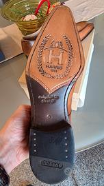 Condizioni: Eccellenti. La suola in cuoio è quasi nuova, con logo Harris e crest originale perfettamente visibili. Presenti leggeri segni naturali sulla pelle che ne confermano l'autenticità.