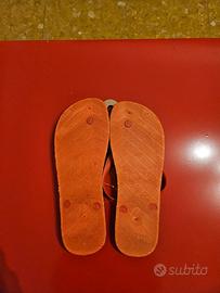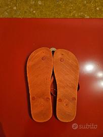 Propongo in vendita stupende infradito, marca Havaianas edizione limitata, con l’immagine paradisiaca di un Paese tropicale con mare, palme e Tramonto e sigillo di garanzia in plastica come rappresentato dalla foto.