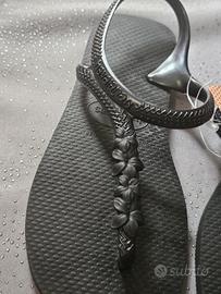 Infradito chiusa dietro con cinturino nera con motivo a fiori davanti misura italiana 35/36 nuovo con cartellino