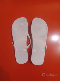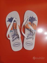 Propongo in vendita stupende infradito marca Havaianas con l’immagine paradisiaca accompagnata dalla tavola da surf sotto una palma di cocco, in edizione limitata, e sigillo di garanzia in plastica come rappresentato dalla foto. Come si evince dal prodotto, la taglia brasiliana è la N. 43/44 mentre l’equivalente taglia italiana / europea è la N. 45/46.