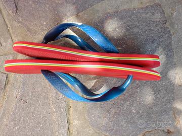Originali infradito brasiliane, con la bandiera del Brasile sulla fascetta e il logo colorato. Nella suola i tre strati in gomma riprendono i 3 colori del Brasile, giallo, verde e blu, trasformando questo modello di Havaianas in uno dei più famosi.