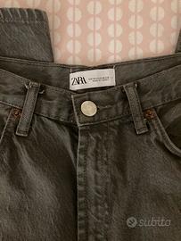 Jeans Zara wide leg color salvia/grigiastro (il colore reale è un po’ più chiaro rispetto alle foto), taglia 38 effettiva. Misure in foto. Acquistati a 45€ nuovi senza cartellino su un altro sito e mai indossati perchè per me lunghissimi.