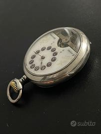 Questo magnifico orologio monta un movimento meccanico a carica manuale 8 Jours, ha una cassa in argento 800 da 48,5mm escluso corona e quadrante bianco in ceramica privo di lesioni o crepe.