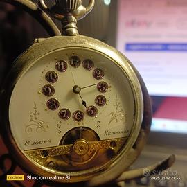 HEBDOMAS orologio vintage da tasca carica manuale. 8 Giorni , diametro 49 mm funzionante