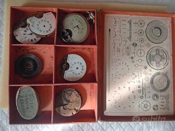 vecchia scatola in cartone contenente parti orologi tasca hebdomas per uso collezionistico o ricambi, come da foto, no spedizioni