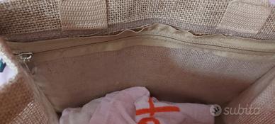 pratica e capiente borsa in juta con tela diamond painting di #hellokitty.